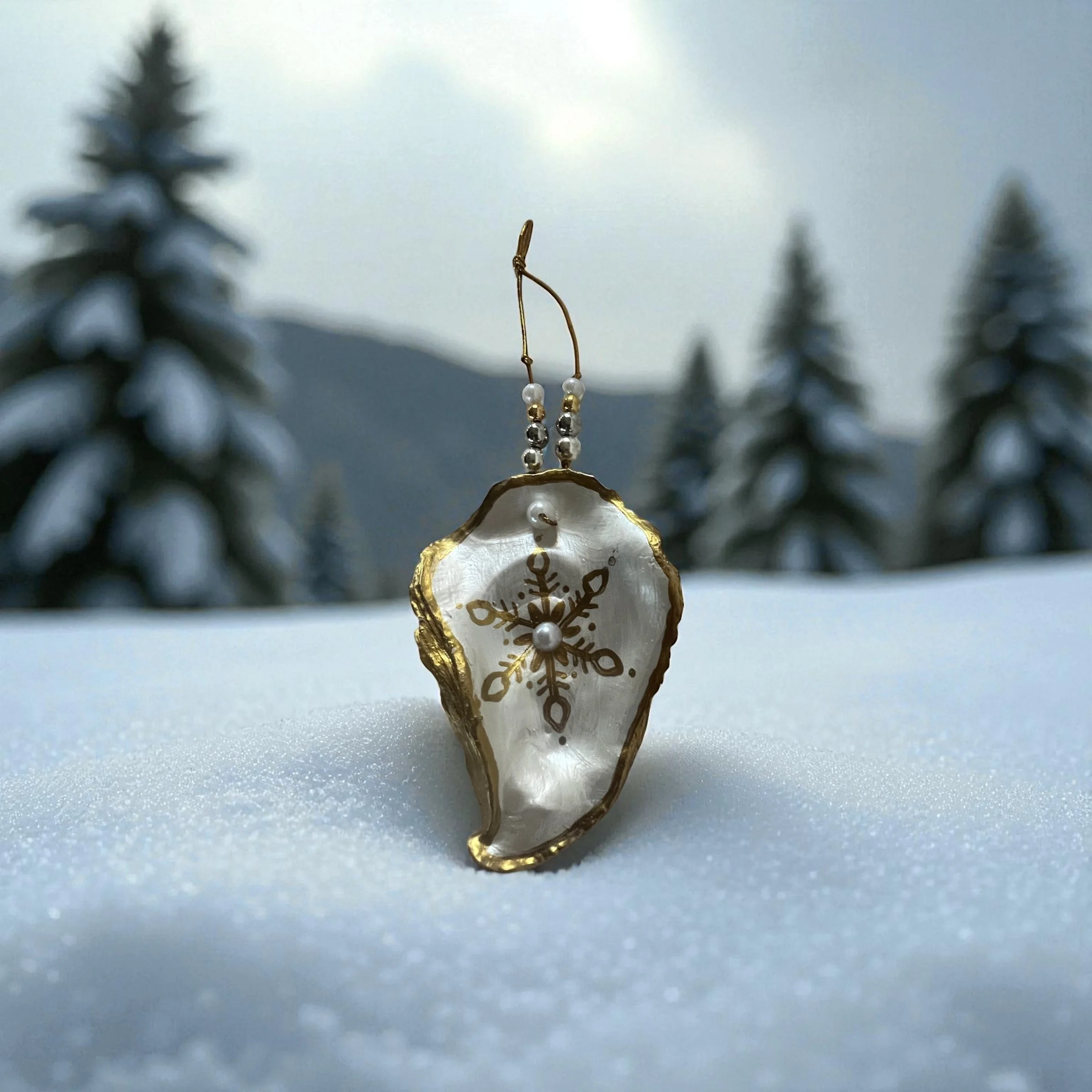 I’ve been working on a group of oyster shell snowflake ornaments, featuring tones of white, gold, and silver. Maybe I’ll add a touch of blue next! Check them out….