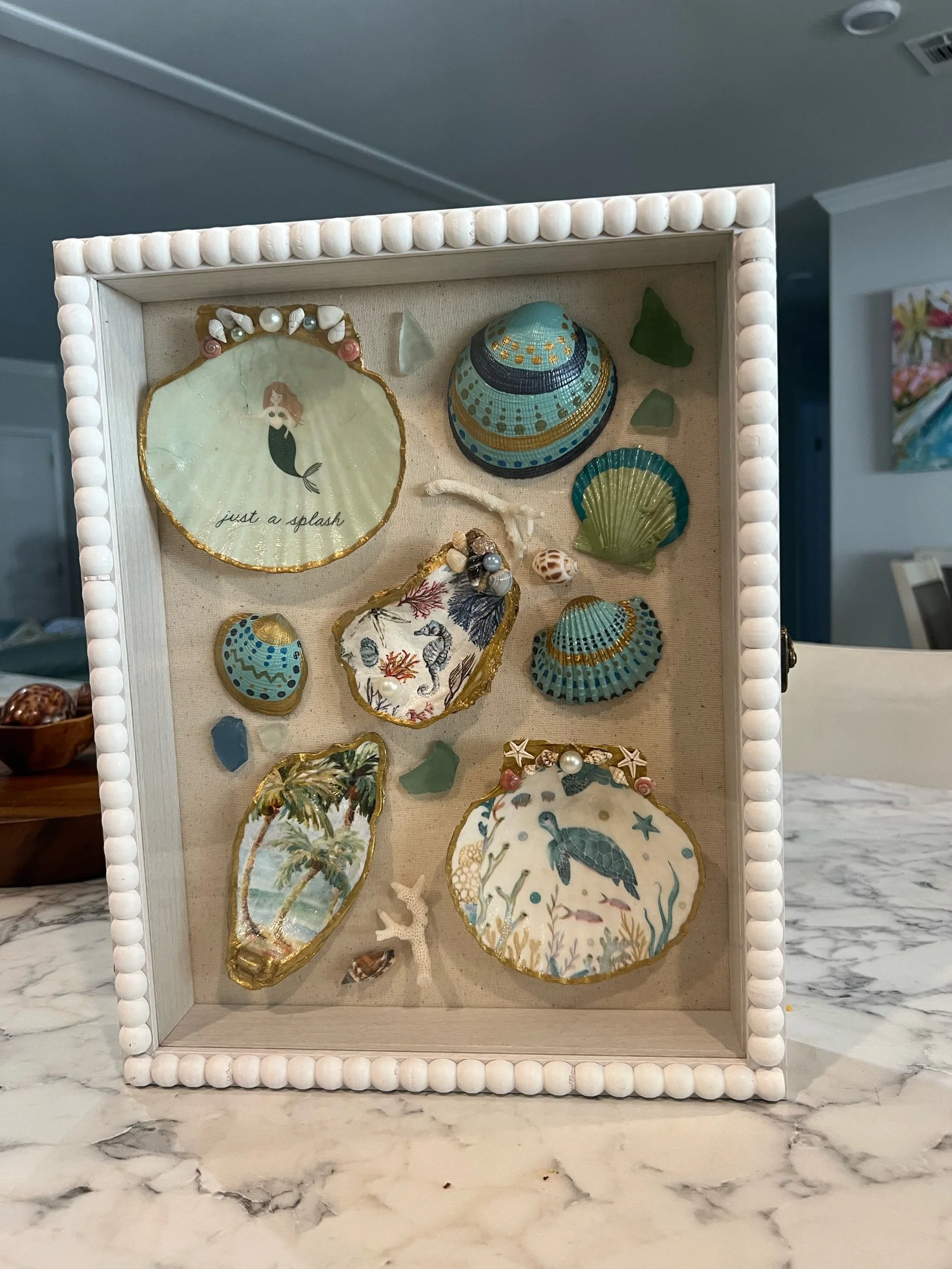 Shop Shop Clear All | Table Decor and Centerpieces | Christmas Ornaments | Trinket dishes | Wreaths | Coastal ornaments | Shadow Boxes | Snowflake ornaments | Decorative magnets | Wall Art | Filters Categories All Table Decor and Centerpieces Christmas Ornaments Trinket dishes Wreaths Coastal ornaments Shadow Boxes Snowflake ornaments Decorative magnets Wall Art Filter Clear Filter Quick View 🤍 Coastal Pearl Oyster Shell Wreath – Elegant Beach House Decor $65.00 Quick View ⭐ Coastal Drift Oyster Shell Wreath – Natural Beach House Decor $65.00 Quick View Lily of the Valley Coastal Wreath $75.00 Quick View 🌊 Oyster Shell Coastal Wreath – Handcrafted Coastal Wall Decor $65.00 Quick View Oyster Shell Wine Bottle Charms – Coastal Blue Beaded Decor Set Featuring Lily Pulitzer Coastal Shell Design $10.00 Quick View 13” X Hand Painted Coastal Shell Wall Art – Oyster & Scallop Shell Shadow Box with Fish – Framed Beach Decor – One of a Kind $65.00 Quick View Flamingo Coastal Shell Canvas Art | Handcrafted Oyster & Seashell Wall Art | Pink, Gold & Turquoise Beach Decor $65.00 Quick View Coastal Shadow Box Shell Art Mermaid Sea Glass Oyster Shell Decor Beach Wall Art Turquoise Gold Coastal Home Decor $65.00 Quick View Octopus Coastal Oyster Shell Art | Hand Painted Shell Wall Decor | Blue Gold Ocean Shadow Box | Beach House Statement Piece $90.00 Quick View Hand-Painted Coastal Scallop Shell Art Panel $75.00 Quick View Mermaid & Sea Turtle Coastal Oyster Shell Shadow Box $90.00 Quick View Charming and Unique Coastal Shadow Box $65.00 Quick View Large Coastal Oyster Shell Gallery Wall Art – 28” x 40” Hand Painted Seashell Collage with Sea Glass Border $225.00 Quick View Amethyst Crown Oyster Shell Jewelry Dish $25.00 Quick View Amethyst Pearl Blossom Oyster Shell Jewelry Dish $25.00 Quick View Amethyst Pearl Tide Oyster Shell Jewelry Dish $25.00 Quick View Midnight Tide Oyster Shell Jewelry Dish With Mermaid Accent $25.00 Quick View Lavender Tide Oyster Shell Jewelry Dish $25.00 Quick View Blush Tide Oyster Shell Jewelry Dish $25.00 Quick View Secret Treasure Oyster Shell Jewelry Dish $25.00 Quick View Amethyst Tide Oyster Shell Jewelry Dish $25.00 Quick View Luxury Elongated Oyster Shell Jewelry Dish with Crystal Cluster & Coastal Sparkle $25.00 Quick View Coastal Oyster Shell Jewelry Dish with Starfish & Golden Pearl Accents $25.00 Quick View Turquoise Oyster Shell Jewelry Dish with Pearl Detail & Coastal Hat Charm $25.00 Quick View Turquoise Oyster Shell Jewelry Dish with Crystal Cluster & Coastal Charm $25.00 Quick View Luxury Coastal Oyster Shell Jewelry Dish with Pearl Flower & Crystal Accents $25.00 Quick View Ocean Blue Oyster Shell Jewelry Dish with Crab & Turquoise Accents $25.00 Quick View Deep Ocean Blue Oyster Shell Jewelry Dish with Crystal & Coastal Charm Accents $25.00 Quick View Turquoise Oyster Shell Jewelry Dish with Starfish & Coastal Accents $25.00 Quick View Elegant Turquoise Oyster Shell Jewelry Dish with Gold & Pearl Accents $25.00 Quick View Turquoise Coastal Oyster Shell Jewelry Dish with Sea Turtle Charm $25.00 Quick View Iridescent Sea Glow Oyster Shell Jewelry Dish – Gold Trim with Jewel Accents $25.00 Quick View Midnight Ocean Oyster Shell Jewelry Dish – Silver Trim with Dolphin Accent $25.00 Quick View Sea Glass Glow Oyster Shell Jewelry Dish – Gold Trim with Pearl & Shell Accents $25.00 Quick View Royal Blue Oyster Shell Jewelry Dish with Gold Trim & Pearl Accents $25.00 Quick View Midnight Tide Oyster Shell Jewelry Dish – Silver Trim Coastal Luxe $25.00 Quick View Deep Ocean Oyster Shell Jewelry Dish – Gold Trim Coastal Elegance $25.00 Quick View Ocean Mist Oyster Shell Jewelry Dish – Hand-Painted Coastal Treasure $25.00 Quick View 17” x 21” Coastal Shell Shadow Box – Hand-Painted Ocean Art $90.00 Quick View Blush Pink Oyster Shell Jewelry Dish with Gold Trim & Crystal Embellishments $25.00 Quick View Coral Red Oyster Shell Jewelry Dish with Gold Trim & Coastal Accent $25.00 Quick View Soft Blush Oyster Shell Jewelry Dish with Gold Trim & Crystal Detail $25.00 Quick View Radiant Coral Pink Oyster Shell Jewelry Dish with Gold Trim & Crystal Accent $25.00 Quick View Hot Pink Oyster Shell Jewelry Dish with Starfish & Pearl Detail $25.00 Quick View Blush Oyster Shell Jewelry Dish with Gold Trim & Pearl Accent $25.00 Quick View Rosy Pink Oyster Shell Jewelry Dish $25.00 Quick View Blush Pink Oyster Shell Jewelry Dish $25.00 Quick View Rosy Pink Oyster Shell Jewelry Dish $25.00 Quick View Blush Pink Oyster Shell Jewelry Dish $25.00 Quick View Blush Pink Oyster Shell Jewelry Dish $25.00 Quick View Blush Pink Oyster Shell Jewelry Tray – Hand-Painted Coastal Treasure $25.00 Quick View Handcrafted Coastal Oyster Shell Wreath – Gold-Trimmed Seashell Door Décor $75.00 Quick View Coastal Sunset Oyster Shell Palm Shadow Box (13”X17”) – Handcrafted One-of-a-Kind Art $80.00 Quick View Coastal Symphony Shadow Box Wall Art – 21” x 17” $85.00 Quick View Green Botanical Oyster Shell Wreath – Handcrafted Coastal Wall Decor with Gold Trim $60.00 Quick View 13”X17” Ocean Treasures Shadow Box – Hand-Painted Oyster Shell Coastal Art in Blue & Gold $65.00 Quick View Hand-Painted Oyster Shell Soap Dish – Coastal Bathroom Decor $25.00 Quick View Coastal Treasures Shadow Box – Hand-Painted Seashell & Oyster Shell Wall Art $60.00 Quick View Coastal Fish Shell Shadow Box Wall Art – Hand-Painted Oyster & Scallop Shells with Sea Glass | Beach Cottage Decor $60.00 Quick View Hand-Painted Oyster Shell Flower – Plum & Gold Trinket Dish • Table Décor • Coastal Art $40.00 Quick View “Navy Blue & Silver Coastal Shell Flower Organizer – Hand-Painted Scallop Shell Trinket Dish” $40.00 Quick View Turquoise & Gold Coastal Shell Flower Organizer – Hand-Painted Scallop Shell Trinket Dish” $40.00 Quick View 🎅 Hand-Painted Santa Oyster Shell Ornament – Coastal Christmas Decor $7.00 Quick View Hand-Painted Coastal S